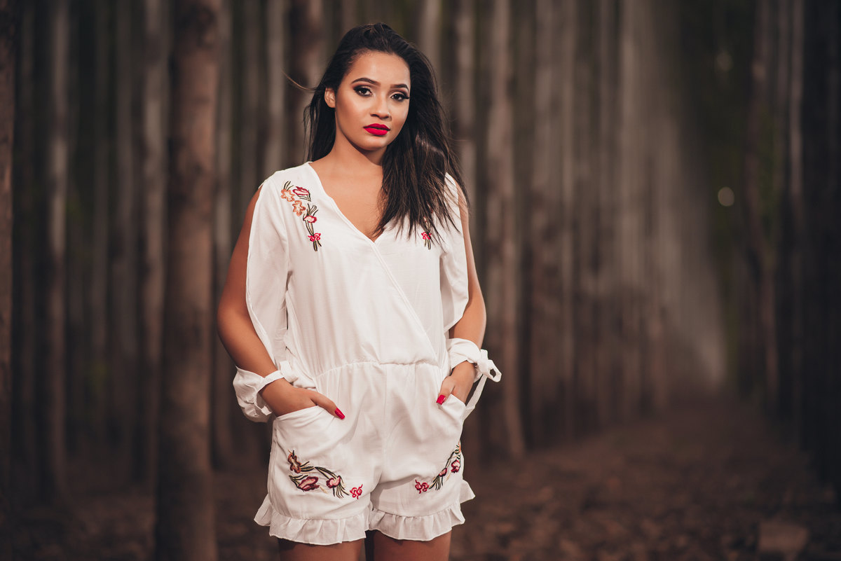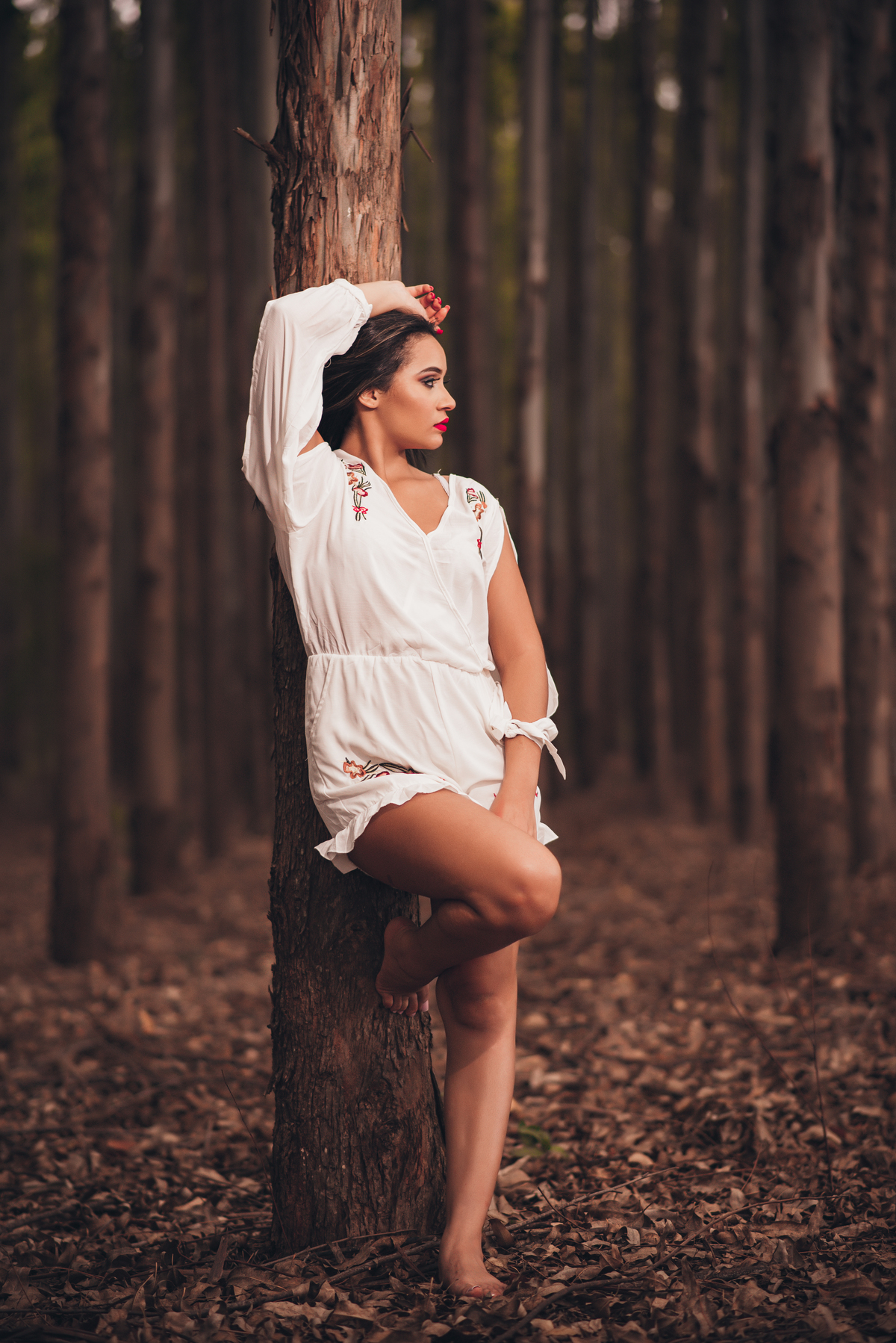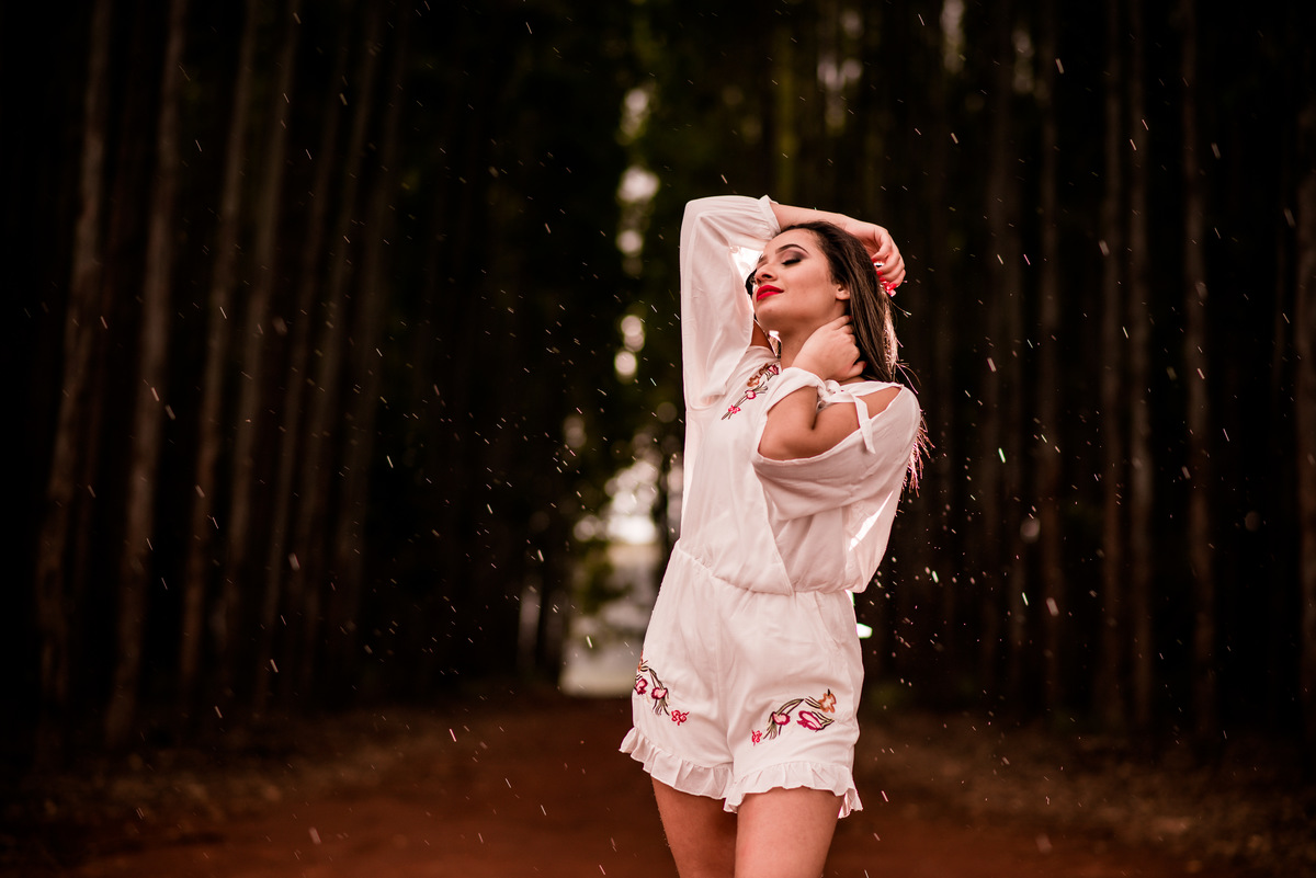 Ensaio temático feito em uma plantação de eucaliptos.