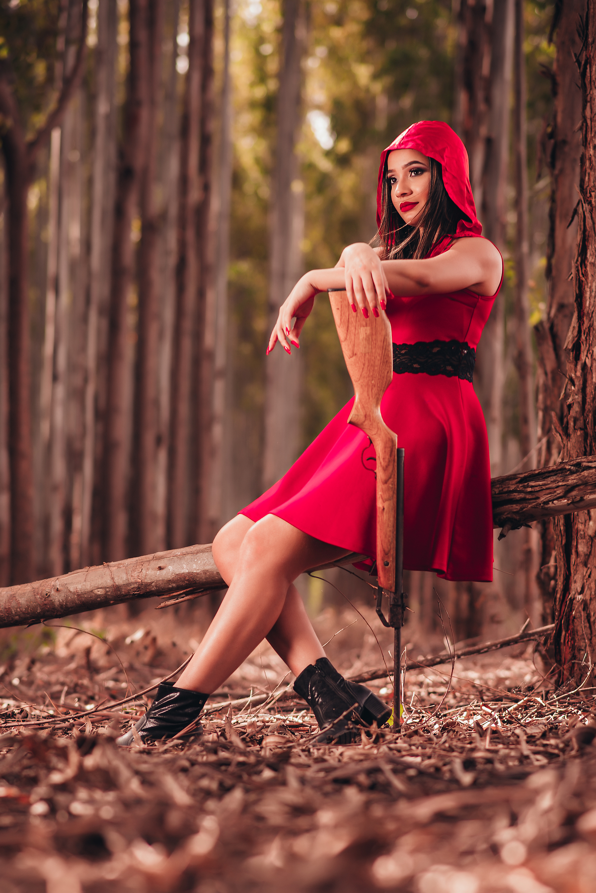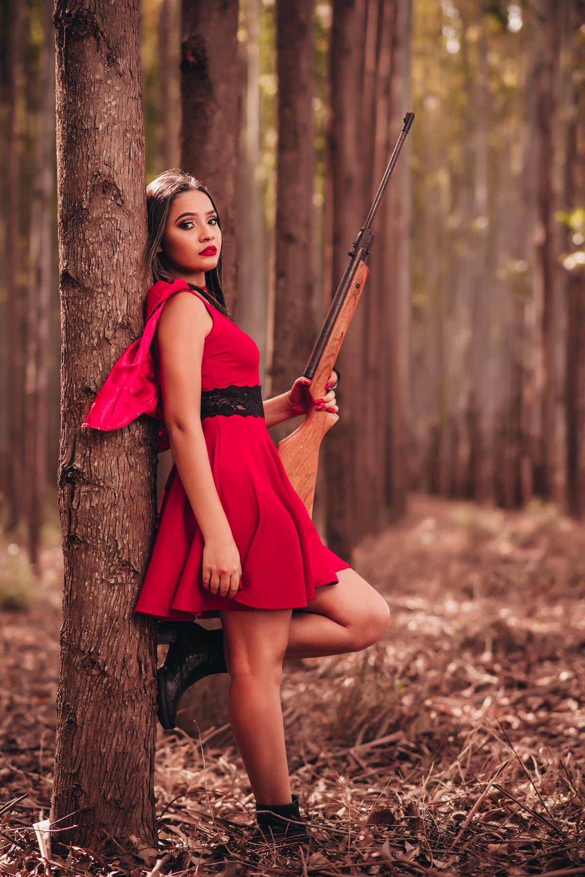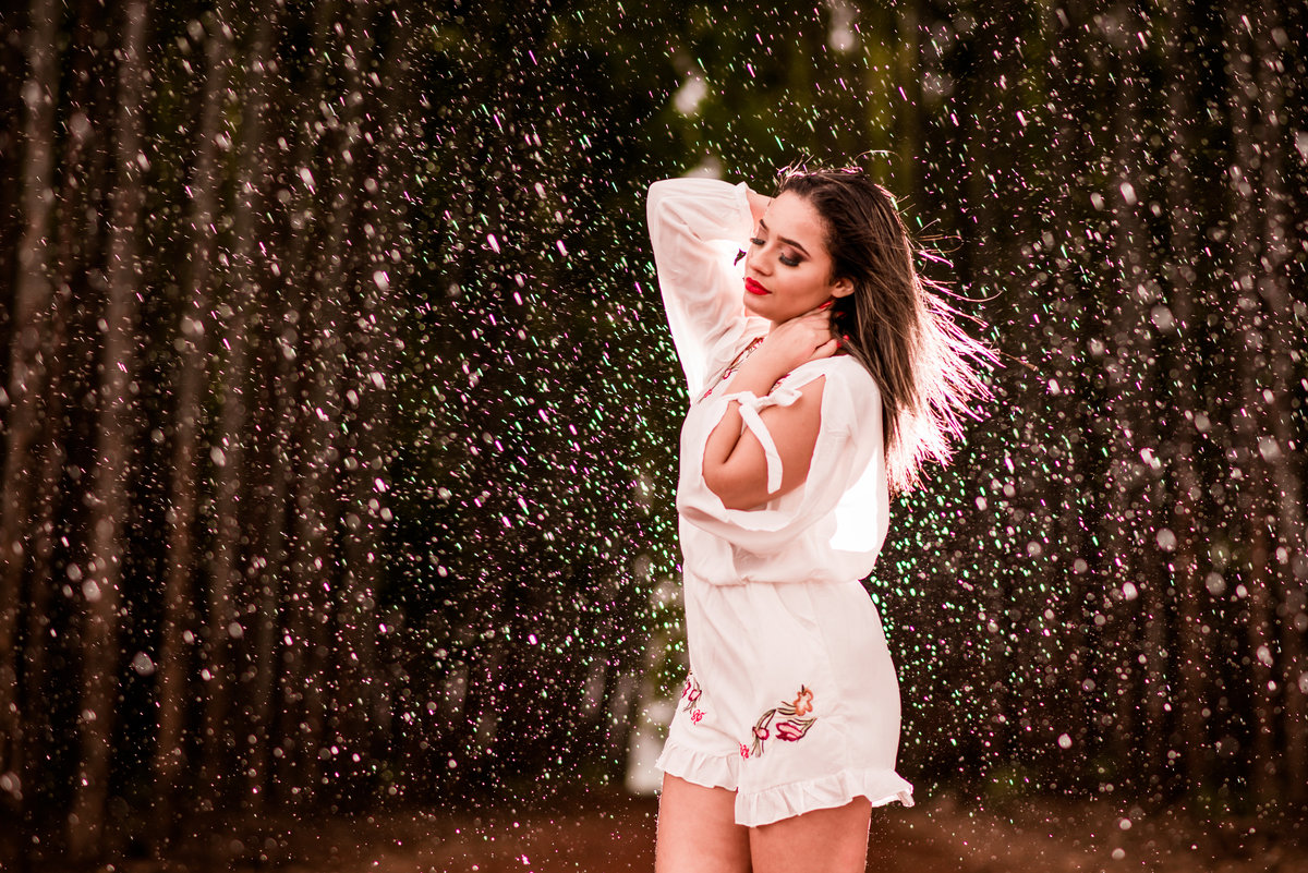 Ensaio temático feito em uma plantação de eucaliptos.